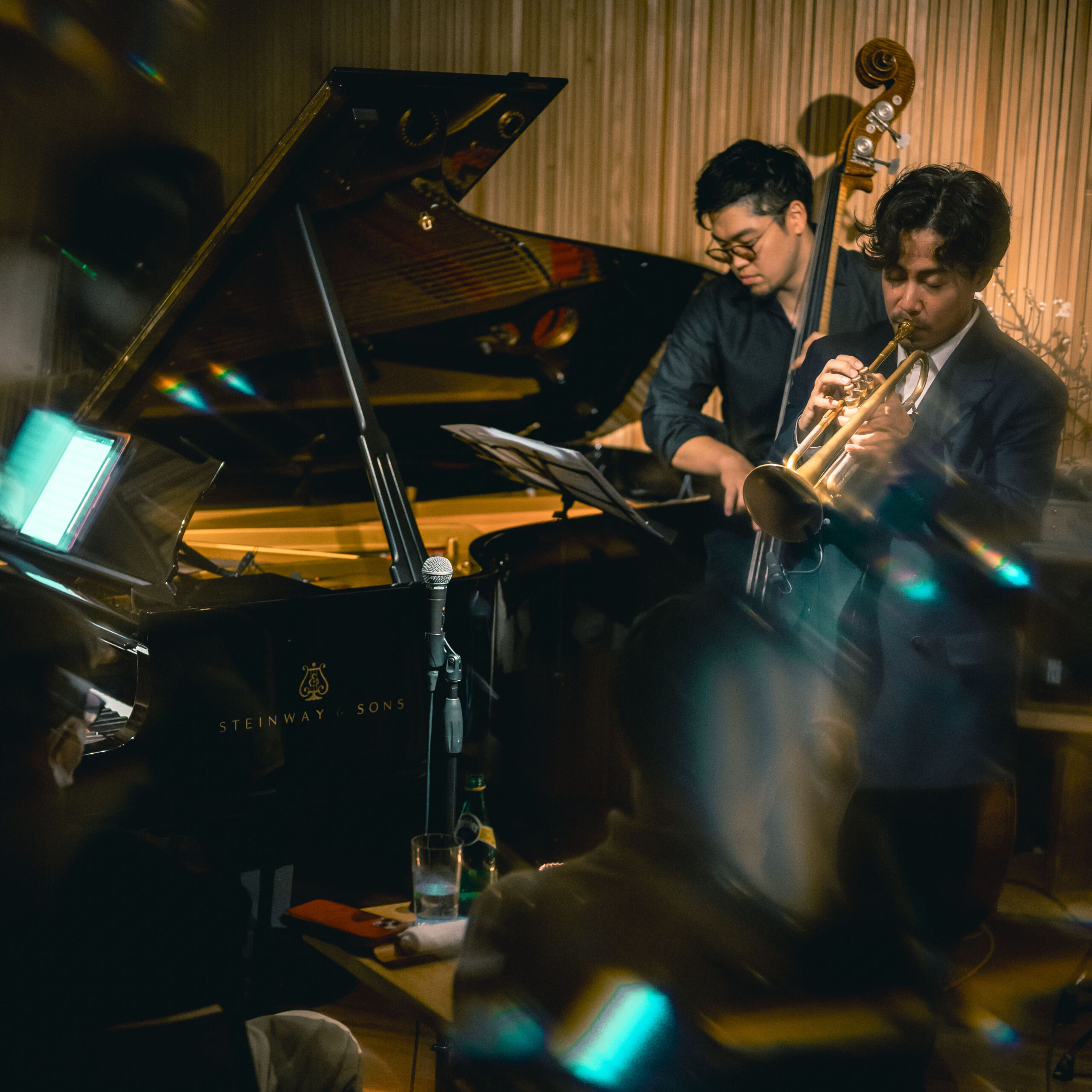 ニューヨークを拠点に活躍する日本人トランペッター、ジュン・イイダが年末の台北ツアーを経て成城学園前のTHE MOMENT JAZZ CLUBで東京初となるリーダーライブを開催。オリジナル曲を中心に、自身のルーツやアイデンティティを表現する色彩豊かな演奏で満員の客席を沸かせます。Sketches of blueのシアトル取材で出会い、もう3年。待望の凱旋公演を共にしたのは近年親交を深めてきた小田桐和寛に小川晋平、それにこの夜初の共演となったDavid Bryant。早くも次の帰国が待ち切れなくなる圧巻の夜となりました。 (取材協力:THE MOMENT JAZZ CLUB) Jun Iida Quartet Shimpei Ogawa (b) David Bryant (p) Kazuhiro Odagiri (ds) Jun Iida (tp) Jun Iida (tp), Shimpei Ogawa (b) Jun Iida (tp)